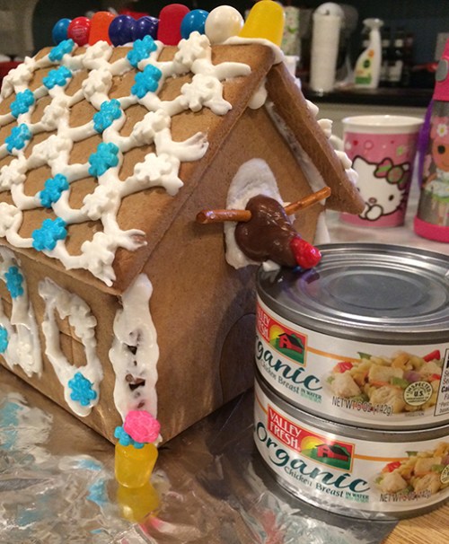 I say “our” because my granddaughter Haley and I made it—from a kit, that is. It began with a “crisis” phone call from Haley. She was home. Her mother was out with friends at Christmas party. Dad and Ruby were asleep upstairs, and poor Haley had just made thirty-five phone calls looking for a gingerbread house kit and finally found one at a Walgreens near our house.