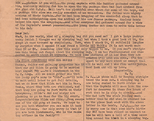 MB has been in the Army for almost three years at this point and in a combat zone for almost two years with the last year close to the front and seeing the worst of it. But now he is out of the action and it is getting to him as he states, “Afraid I am getting weary of the war. I’ve lost all ambition & initiative. Things are too dull back here – same nothingness each day. I’m even getting tired of looking at the Italians.” (The women?) “Sienna (a beautiful and historic city) is only six miles away, but I can’t work up enough interest to visit it. Maybe if I had a few air raids I would snap out of it!”
