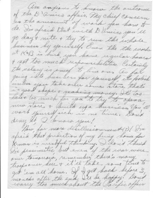 I can’t read that without tearing up. His mother died before the war of a disease that they developed a cure for only a couple of years later. He was close to his dad and worried about him back home having to work for K&B Drug Stores as a druggist after losing his own chain of stores during the Depression.